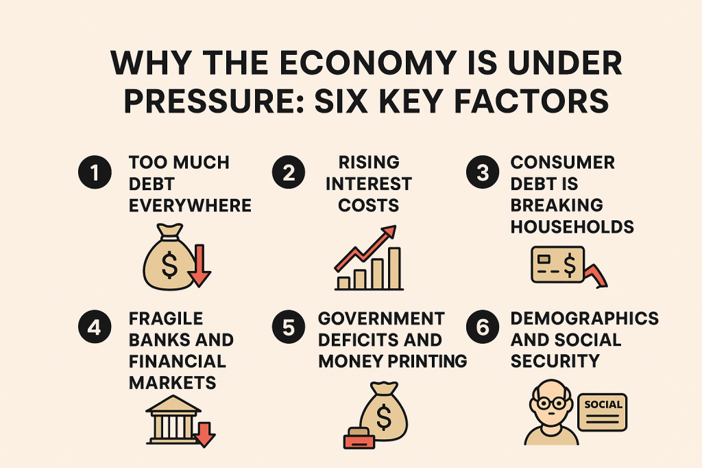 Many people feel that something is “off” in the economy but can’t quite explain why. Jobs still exist, markets haven’t collapsed, and life seems mostly normal. But beneath the surface, serious pressures are building. These pressures come from six major factors working together—not one single event.