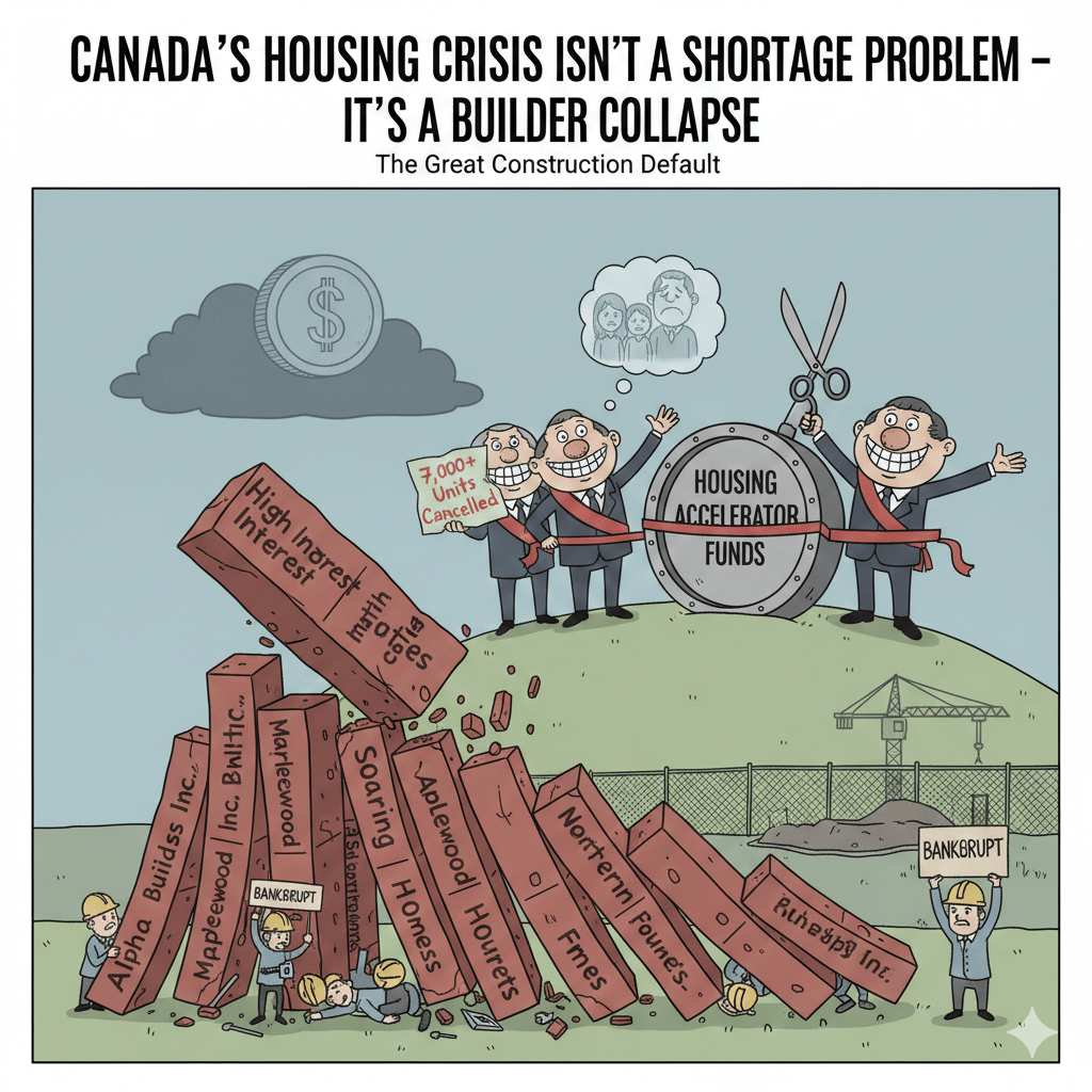 What if the real reason Canada’s housing crisis keeps getting worse isn’t demand, immigration, or even affordability—but the collapse of the companies that actually build homes?