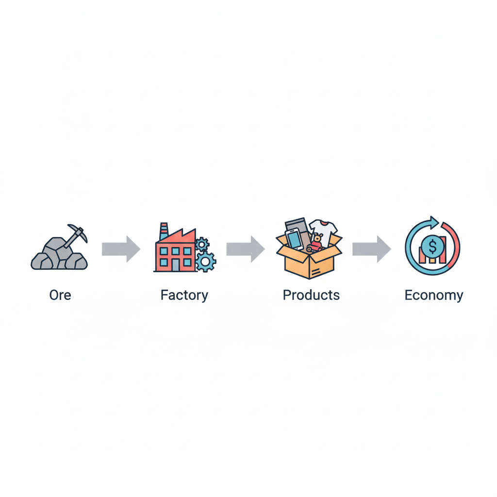 Whoever controls materials controls manufacturing, pricing, and innovation.